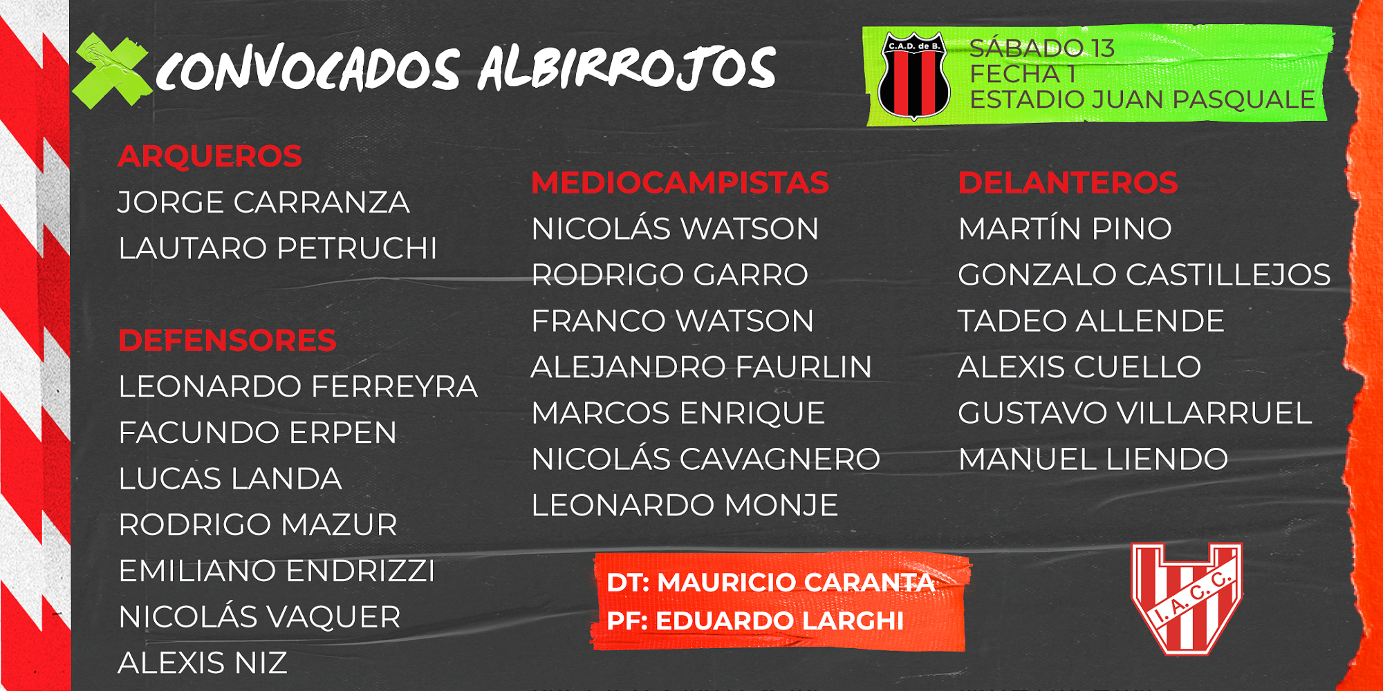 Estamos listos: el equipo dirigido por Mauricio Caranta saltará al terreno de juego en el debut a las 17.10 horas en el Juan Pasquale ante el Dragón en un encuentro que será transmitido por TyC Sports.