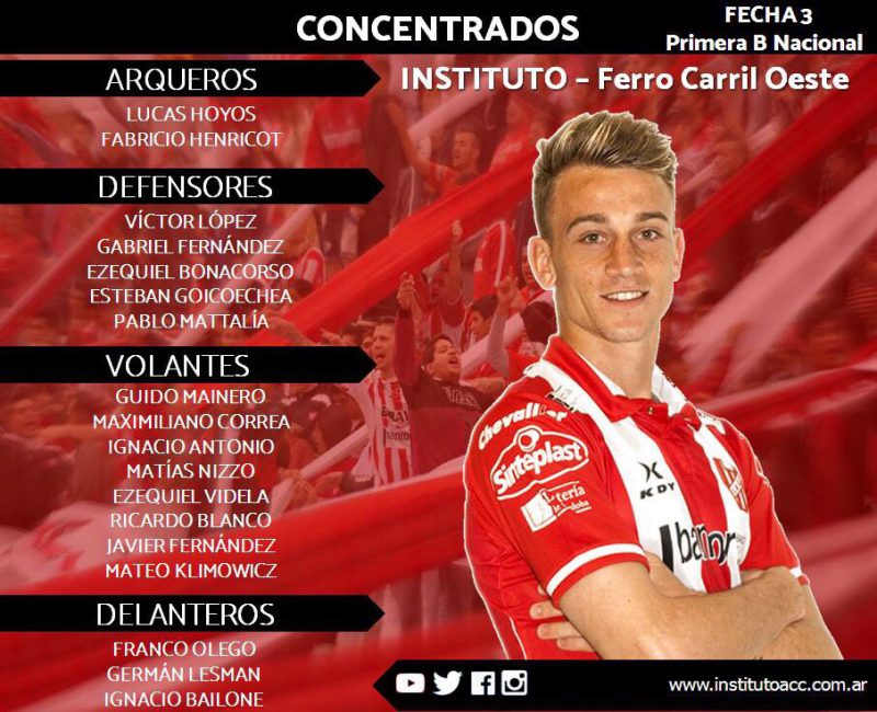 El cuerpo técnico entregó la lista con los 18 citados para el partido de mañana ante Ferro a las 17.05 con el arbitraje de Gerardo Mendez Cedro, será televisado por TyC Sports.
