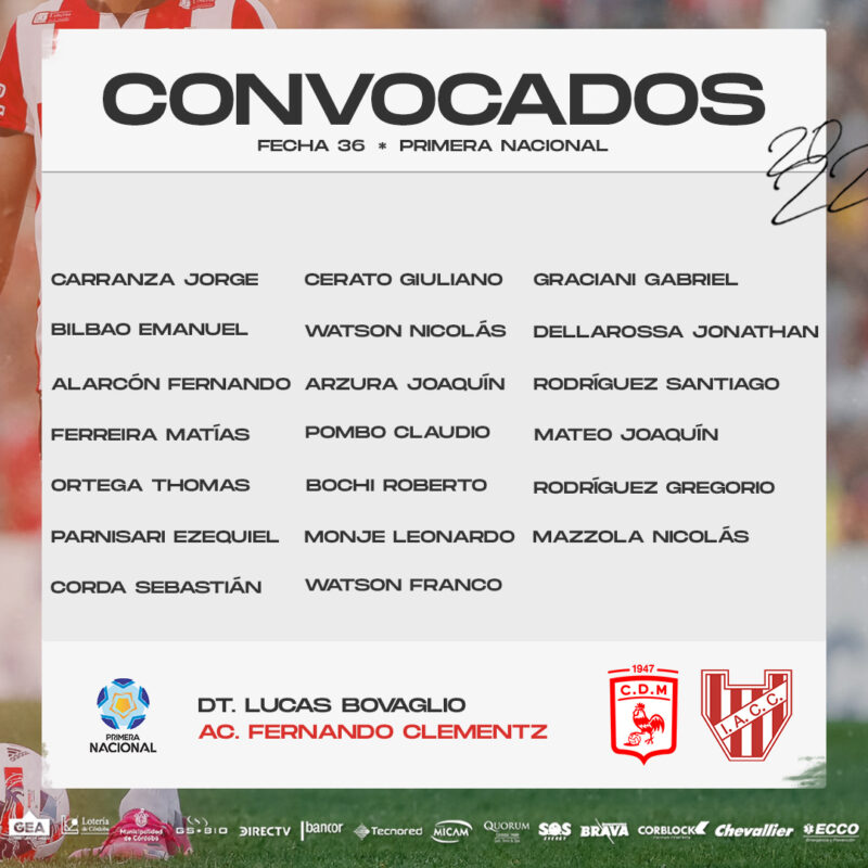 Entre los citados se destaca la vuelta de Nicolás Mazzola quien se había lesionado contra Flandria por la fecha 34.