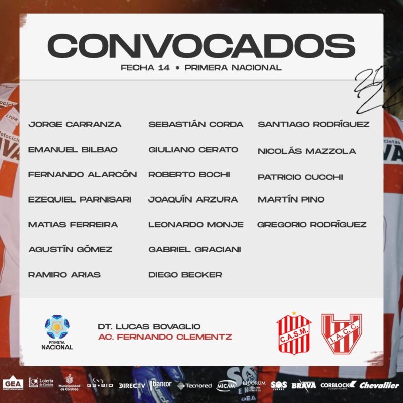 Los citados por el entrenador Lucas Bovaglio: