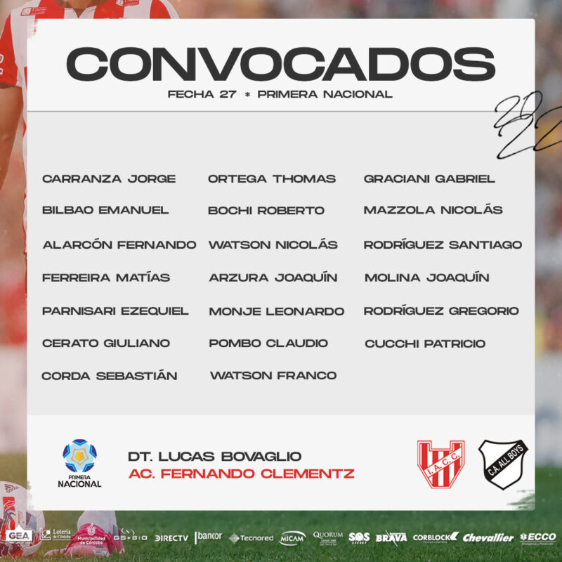Instituto enfrenta al conjunto “Albo” esta noche a las 21.40 hs. en el Monumental y el cuerpo técnico comandado por Lucas Bovaglio armó la lista de citados.