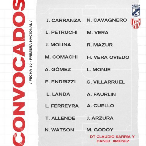 La dupla gloriosa Sarría – Jiménez armó la lista de viajeros de la cual Rodrigo Garro quedó descartado por precaución ya que sufrió un edema miofibrilar. En su lugar fue convocado Leonardo Monje.