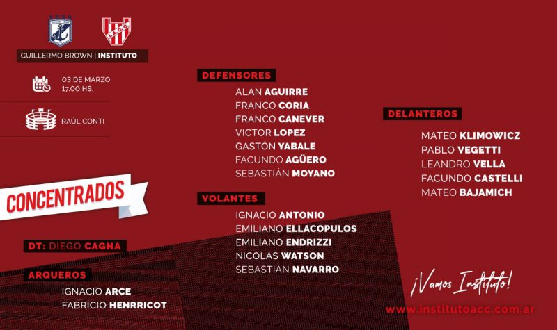 Instituto entrenó por última vez en La Agustina y a las 18.00 parten rumbo al Sur del país.