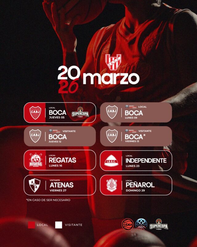 Luego, llegará la continuidad de la Liga Nacional, con una importante cantidad de encuentros en condición de local y, además, la visita a Atenas, uno de los partidos destacados del calendario mensual.