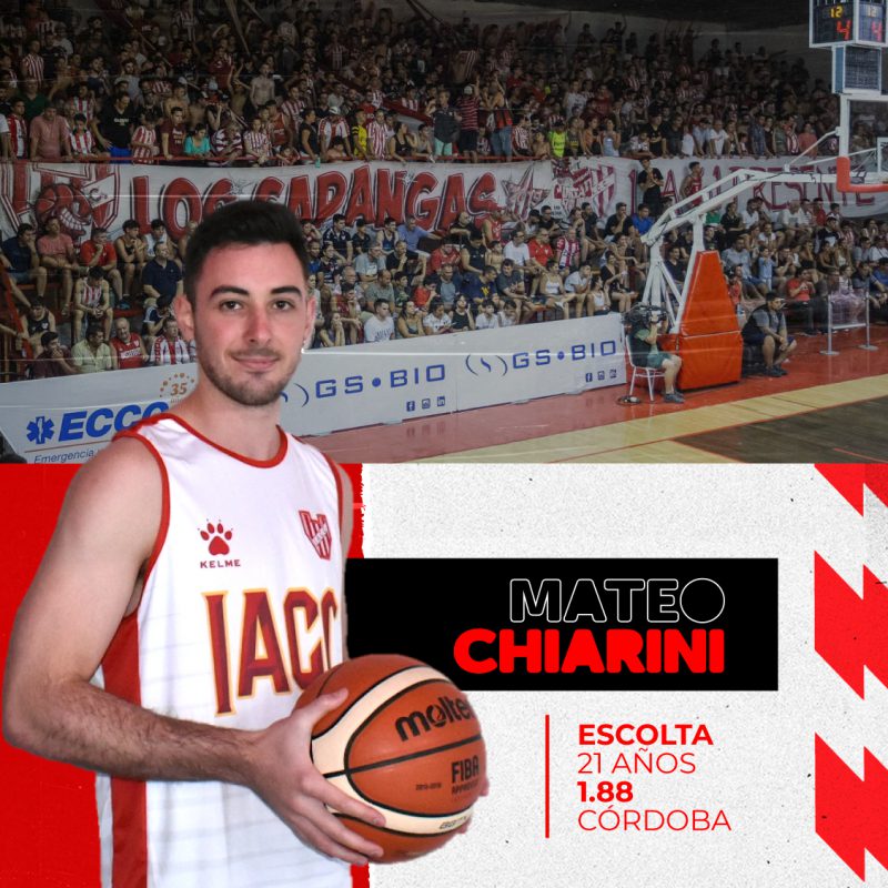 Mateo Chiarini, de 21 años, viene de atravesar los últimos siete años de su carrera en Atenas. Debutó en La Liga el 16 de febrero de 2016 y en la última temporada, con 28,1, fue el jugador que más estuvo en cancha.