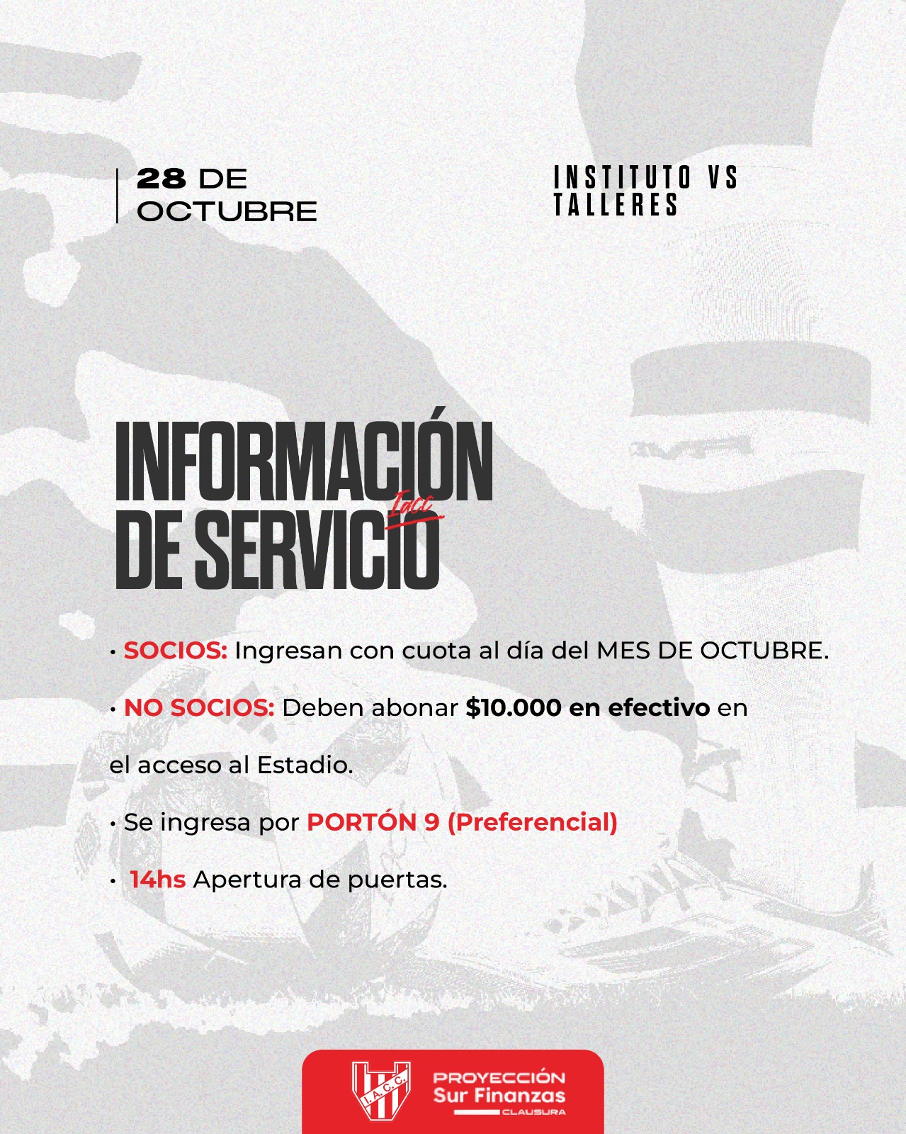 • No socios/as deberán abonar $10.000 en efectivo al momento de acceder al estadio.