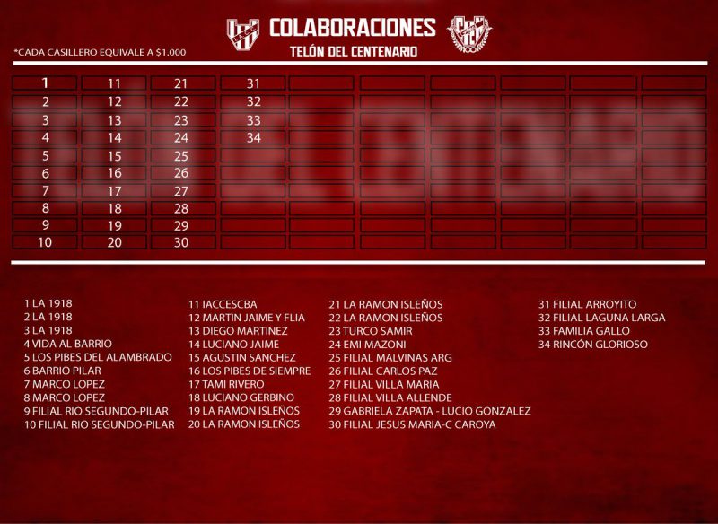 ¿De qué se trata? La idea de este grupo es crear un telón gigante, de 80 x 25 metros, para presentar el día del cumpleaños del club. El costo del mismo, entre tela, pintura y mano de obra, es de $100 mil. Para costear los gastos se les ocurrió “dividirlo” en 100 cuadrados que se venden a mil pesos cada uno.
