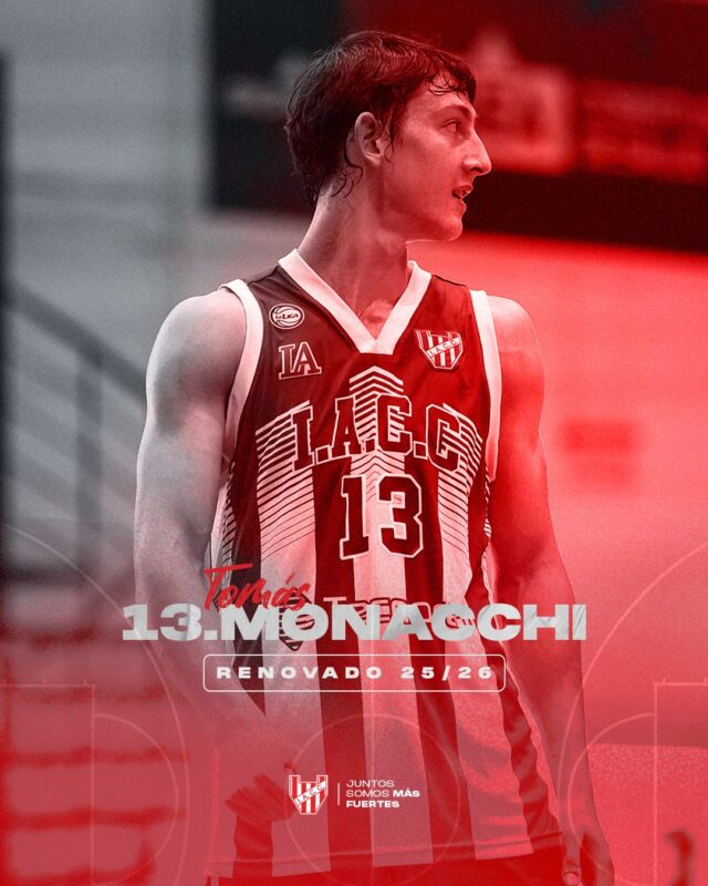 Instituto Atlético Central Córdoba informa que Tomás Monacchi renovó su vínculo con el club y formará parte del plantel profesional de básquet en la temporada 2025/26, donde el equipo afrontará la Liga Nacional y la BCLA, bajo la conducción de Diego Vadell.