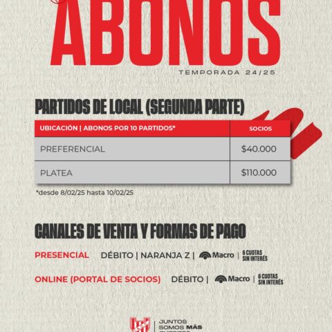 Instituto anuncia la venta de abonos para los 10 partidos restantes de la fase regular de la Liga Nacional 2024-25 en el estadio Ángel Sandrín. La venta se realizará de forma presencial y online a través del portal de socios.